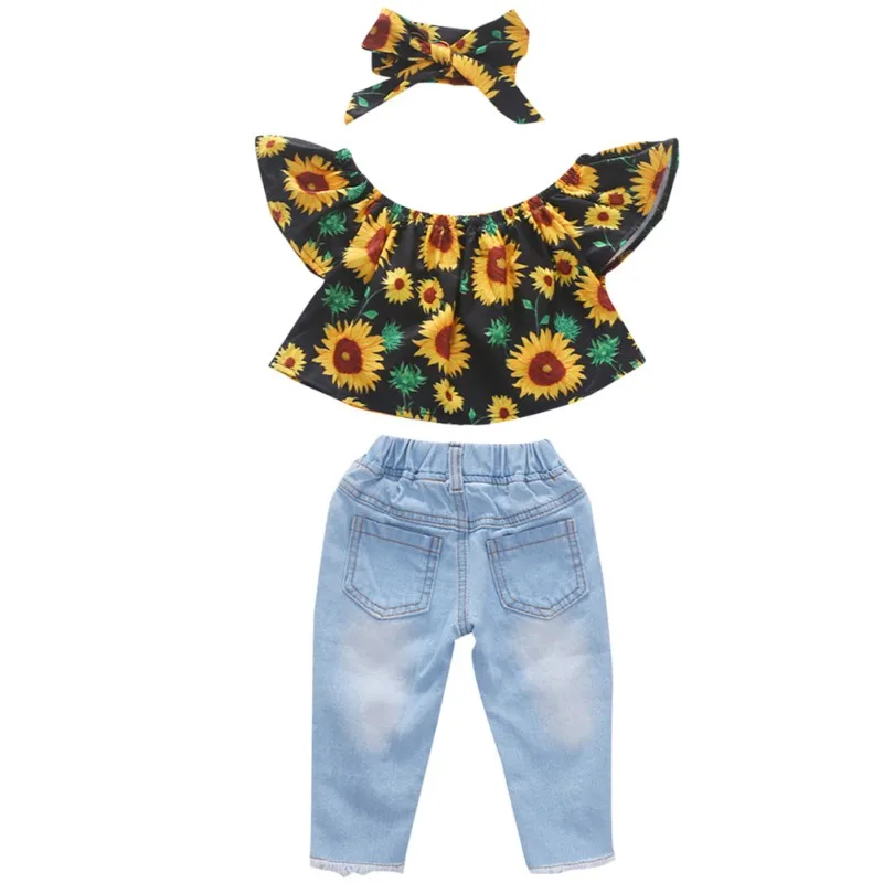 Limited Offer of Hot 3PCS Toddler Kids Baby Girls Clothes Sets T-shirt Tops + Jeans Pants Summer Outfits Clothing Ou